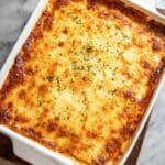 To reheat, cover individual portions or the entire dish with foil and warm in a 350ºF oven until heated through, about 20 minutes. Removing the foil for the last few minutes helps revive that cheesy, bubbly crust. Microwaving works too, but the oven keeps the best texture.