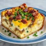 This hearty Tater Tot Breakfast Casserole combines savory breakfast sausage, crispy bacon, and melted cheeses over a bed of crispy tater tots, all baked together with a fluffy egg mixture. Perfect for a family brunch or a make-ahead breakfast, this casserole is flavorful, filling, and easy to prepare.