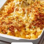 This homemade baked mac and cheese recipe offers a rich and creamy cheese sauce made with sharp cheddar and Gruyere cheeses layered with tender elbow macaroni, topped with a buttery, crispy panko and Parmesan breadcrumb crust, and baked to golden perfection. Perfect as a comforting main dish or a hearty side, this classic comfort food is sure to be a crowd-pleaser.