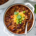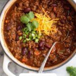 Reheat your chili gently on the stove over low to medium heat, stirring occasionally until warmed through. You can also microwave individual portions, stirring halfway through. If the chili thickened too much in the fridge or freezer, add a splash of beef broth or water to loosen it up while reheating.