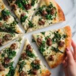 A delicious and hearty Turkey Sausage and Broccoli Rabe Pizza combining savory turkey sausage, slightly bitter broccoli rabe, and melted cheeses on a crispy homemade or store-bought dough. Ready in just 30 minutes, this pizza offers a balanced blend of flavors perfect for a satisfying weeknight meal or casual gathering.