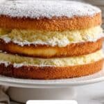 A light and airy Vanilla Sponge Cake made with whipped egg whites for a delicate texture, subtly flavored with vanilla extract, perfect for any occasion or as a base for your favorite frosting and toppings.