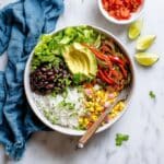 Feel free to customize your Vegan Burrito Bowls with Black Beans Recipe by adding garnishes like vegan sour cream, salsa, hot sauce, or sliced jalapeños for a little extra kick and creaminess that suits your mood.
