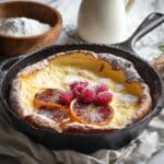 This Dutch baby is a star on its own but serves beautifully alongside a cup of freshly brewed coffee or a pot of tea. For a heartier brunch, try it with smoked salmon and cream cheese or a small green salad dressed lightly with lemon vinaigrette to balance the sweetness with savory bite.