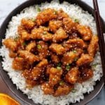 Serve your orange chicken over steamed jasmine or basmati rice to soak up the wonderful sauce. For a balanced meal, add steamed or stir-fried vegetables like broccoli, snap peas, or baby bok choy — their crisp freshness complements the richness perfectly.