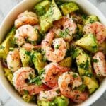 Since the shrimp is already cooked, if you prefer a warm salad, gently reheat the shrimp alone in a skillet over low heat and then toss with fresh greens and dressing before serving. Avoid microwaving the whole salad to keep the avocado and greens fresh and vibrant.